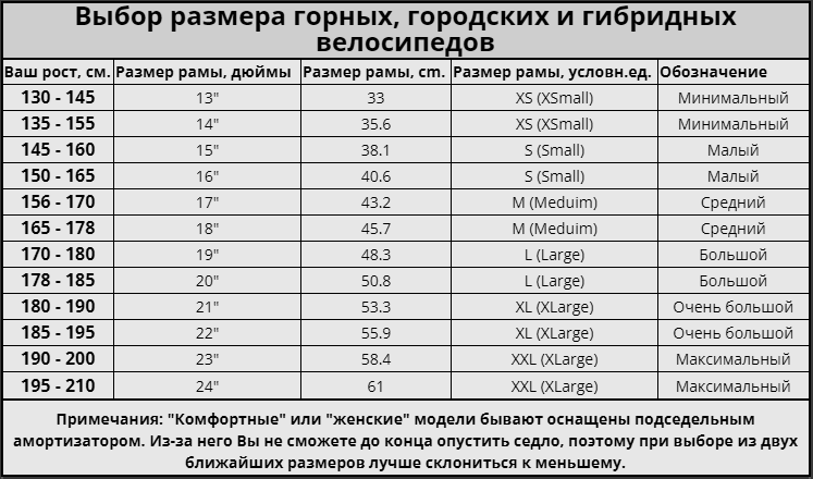 меньше от рекомендуемого в таблице. Большее расстояние от паха до рамы придаст вам
