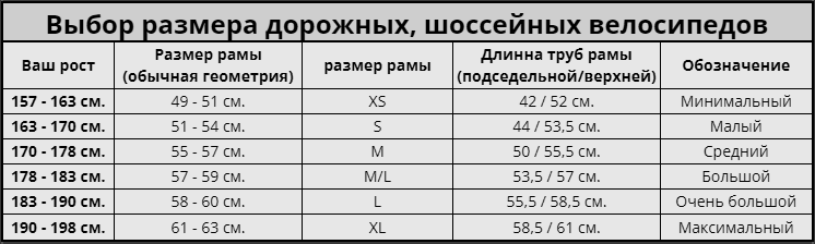 выбирать ростовку исходя из таблицы и предыдущего пункта. Если вы полный, лучше взять раму